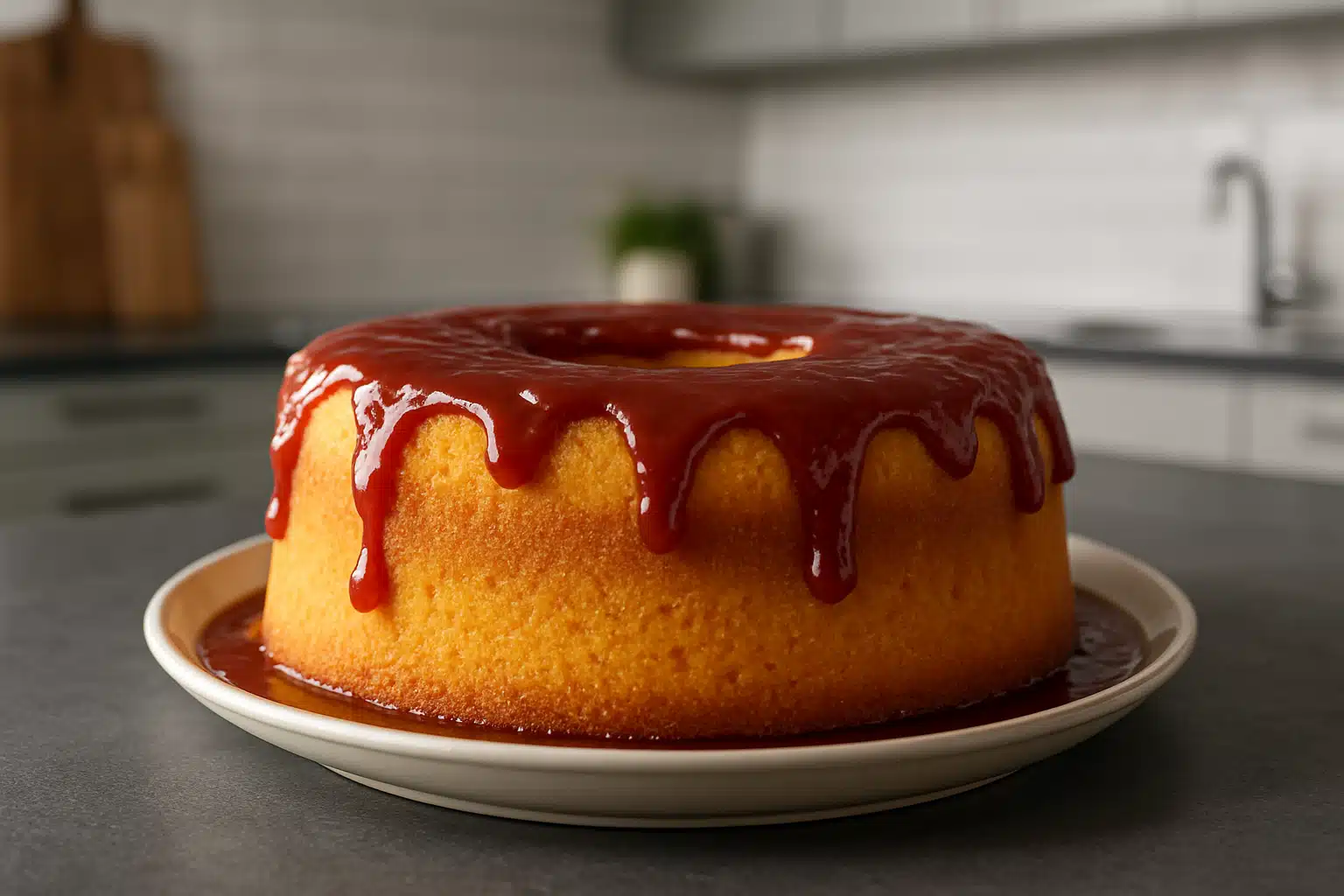 - Despeje sobre o bolo já desenformado.